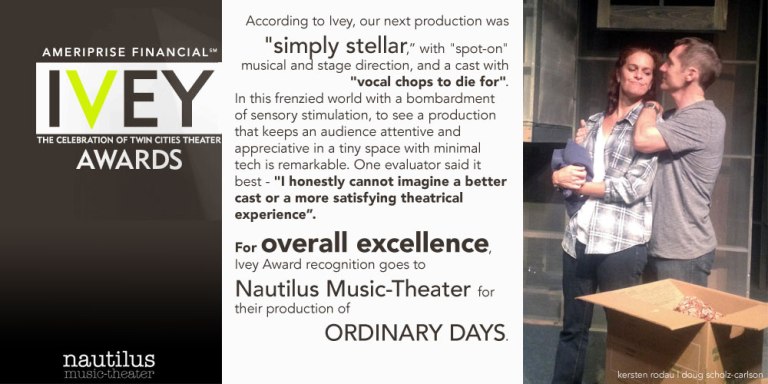 Actor: Ordinary Days at Nautilus Music-Theater November 4, 2013November 6, 2016 Kersen Rodau and Doug Scholz-Carlson in Ordinary Days Share this: Click to share on Facebook (Opens in new window) Facebook Click to share on X (Opens in new window) X Like Loading... Posted by Doug Scholz-Carlson Categories ActorTags Nautilus Music-Theater