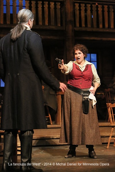 Claire Rutter as Minnie and Greer Grimsley as Jack Rance in the Minnesota Opera production of La fanciulla del West