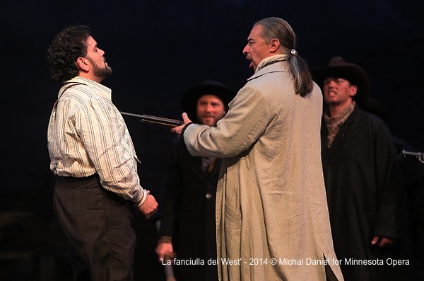 Rafael Davila as Dick Johnson and Greer Grimsley as Jack Rance in the Minnesota Opera production of La fanciulla del West