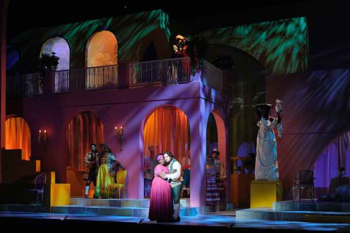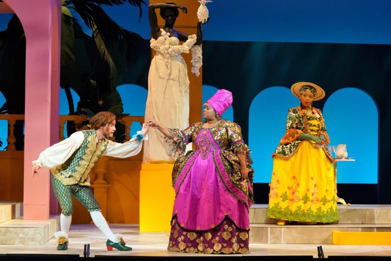Symone Harcum as Léontine, Zoie Reams as Dorothée, and Carlos Enrique Santelli as Valcour in Minnesota Opera’s “The Anonymous Lover.” (Photos by Dan Cory Weaver)