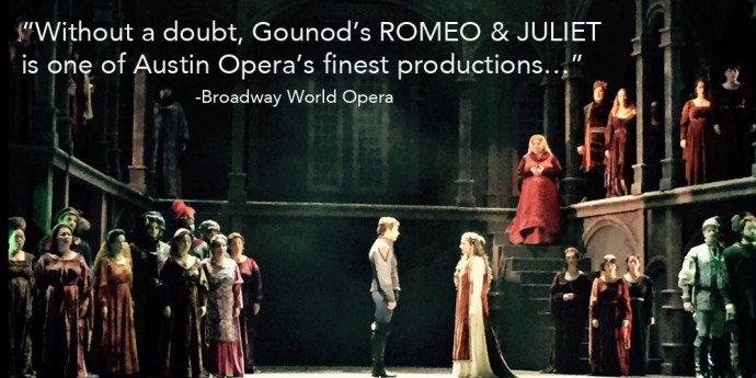 “Given a polished and glowing presentation by Austin Opera, Romeo and Juliet is a grandiose, gallant, and beautifully staged telling of Shakespeare’s most well-known tale…” –Examiner.com “…Douglas Scholz-Carlson would prove to be a gifted director, marrying …
